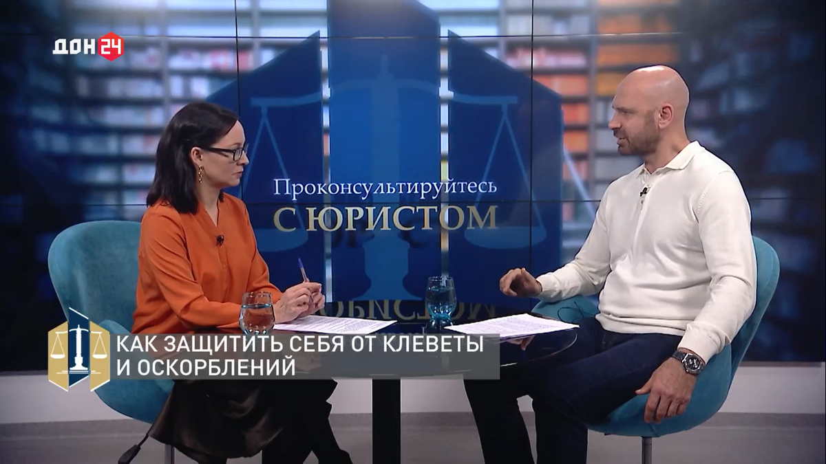 На очередной передаче «Проконсультируйтесь с юристом» на телеканале Дон 24 с Анной Туполевой мы обсудили вопросы, связанные с тем, как защитить свои права при оскорблениях и клевете. Нужно учитывать, что Клевета – это умышленное распространение заведомо ложной информации, которая порочит честь, достоинство или репутацию человека, например, когда кто-то пускает слух о том, что коллега берет взятки, зная, что это неправда. При этом, даже, если сведения и порочащие, но у распространителя были разумные основания полагать, что это правда, например, если будет подтверждено, что ранее лицо уже было осуждено за подобное преступление и то, что на видео было зафиксировано, что ему был вручен конверт, пусть даже пустой, то клеветы не будет. В этом случае не будет заведомой ложности сообщенной информации и защита интересов «опороченного» будет осуществляться путем гражданского иска с требованием о компенсации морального вреда. Оскорбление же - это грубое или неприличное выражение, направленное н