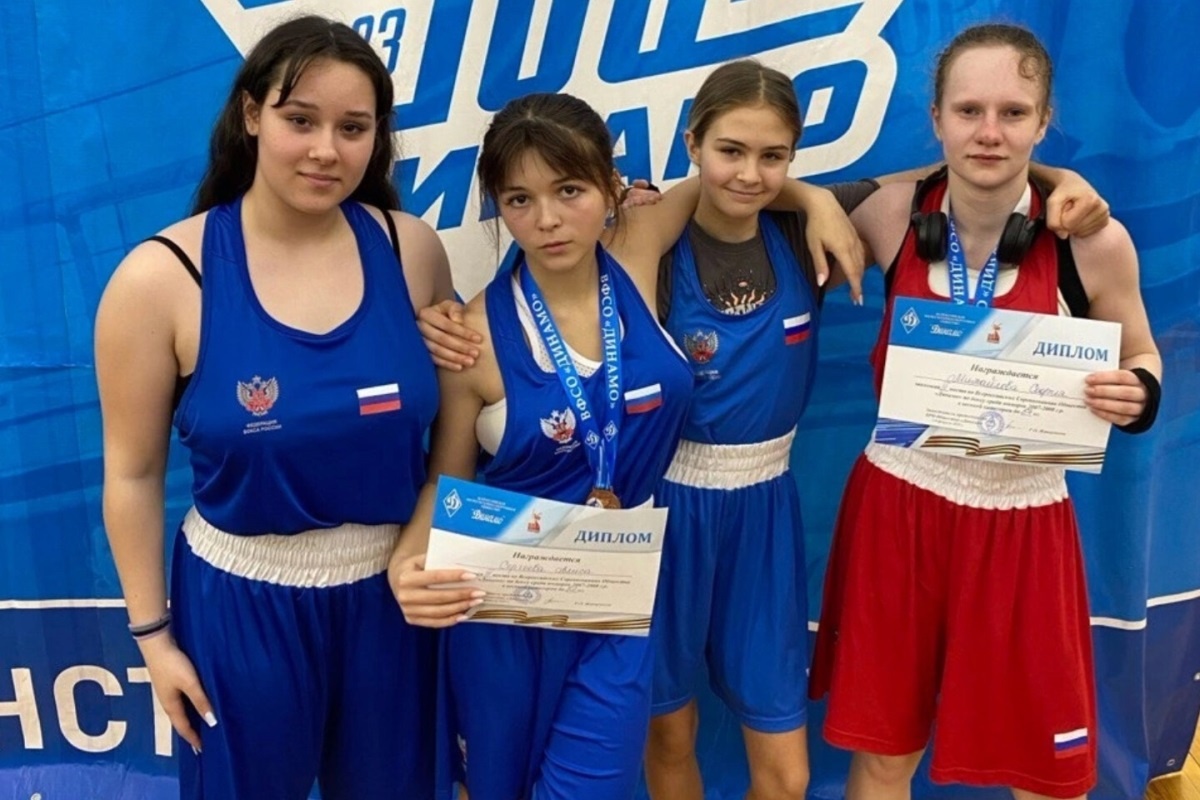 Полина Цветкова и Таисия Нефедова вместе с медалями завоевали путевки на первенство страны. В городе Собинка Владимирской области завершились всероссийские соревнования по боксу общества «Динамо» среди девочек 13-14 лет, девушек 15-16 лет, юниорок 17-18 лет и юниорок 19-22 года. Статусный турнир собрал на ринге более 170 участниц из разных регионов. Успешно выступили воспитанницы клуба «Тверской ринг» и муниципальной СШОР «Лидер» города Твери, которые занимаются под руководством тренеров Александра Ежова, Аркадия Заморского и Владимира Ежова. Полина Цветкова завоевали золотую медаль среди девушек 15 – 16 лет в категории до 80 кг. Таисия Нефедова стала серебряным призером среди девушек 13 – 14 лет в весе до 44 кг. На третью ступень всероссийского пьедестала почета по итогам поединков среди юниорок 17-18 лет поднялись София Михайлова (54 кг) и Алиса Сергеева (52 кг). – Мы очень довольны результатами наших девочек. Таисия Нефёдова и Полина Цветкова получили путёвки на первенство России. С