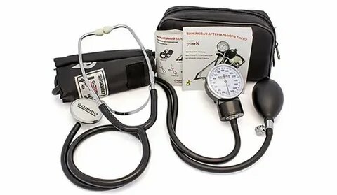 Ручной тонометр (манжета, манометр, груша, стетоскоп).