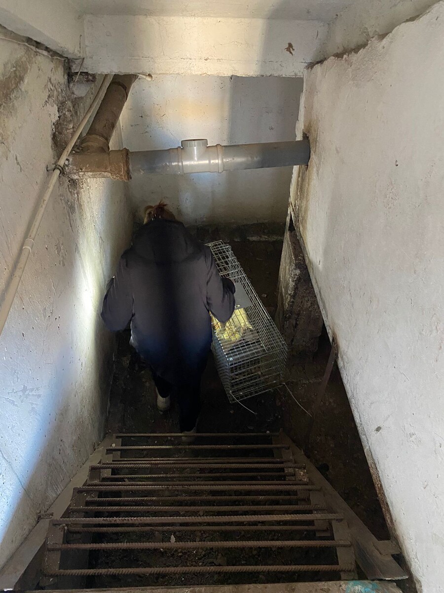 Знакомить с котенком вас будем в такой же хронологии как знакомились с ним мы. Сначала был звонок с нашей вет клиники "Айболит", куда пришла старенькая бабушка за помощью, а девушки с клиники перенаправили к нам. Бабушка оказалась волонтером, хотя сама, скорей всего, и не думала, что она волонтер, она просто очень жалеет бездомных кошек. В подвале ее многоквартирного дома поселилась кошечка, которая родила двух котят. Возраст самой бабушки за 80 лет и как она спускается в подвал их кормить, дважды в день, страшновато представить. Лестница там крутая, в самом подвале очень много труб, которые, в силу ее возраста, тяжело перешагнуть и не менее тяжело пройти под ними Она очень переживала, что скоро не сможет больше туда спускаться, а кошка продолжит рожать, и котята, к тому же, стали дикими. Привыкли жить в огромном подвале только с мамой, без выхода на улицу. Открытых продухов в этом доме нет. Девушки волонтеры вооружившись котоловкой оправились в этот подвал, чтобы выловить обоих котя