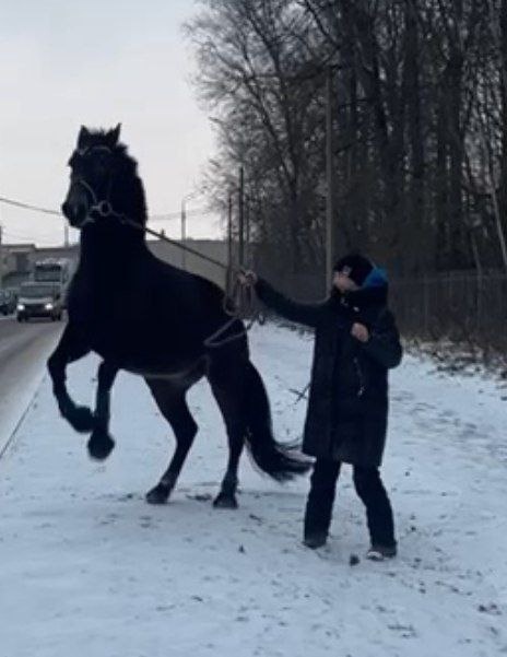 Что бы были силы у лошади, её нужно кормить, кормить и гулять, гулять в леваде, в поле, в крытом манеже, просто на корде. Самое лучшее, если гулять со свободной лошадью вместе.