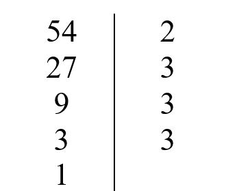 значит, 54 = 2 · 3 · 3 · 3.