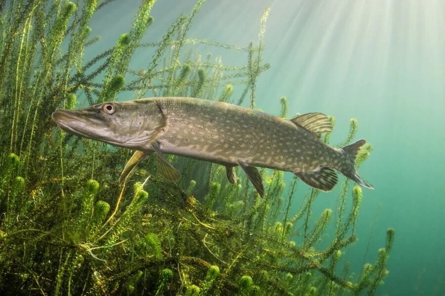 Щука – одна из самых известных хищниц среди пресноводных рыб. Она обитает практически повсеместно в реках, озерах и прудах Европы, Азии и Северной Америки. Эта рыба привлекает внимание не только своим внушительным размером, но и своими повадками, которые делают ее настоящим охотником подводного мира. Щука имеет удлиненное тело, покрытое мелкой чешуей зеленовато-серого цвета с темными пятнами. Ее рот усеян острыми зубами, которые помогают ей захватывать добычу. Средняя длина взрослой особи составляет около 60–100 см, хотя встречаются экземпляры длиной свыше 150 см и весом более 30 кг. Самый крупный зарегистрированный экземпляр весил почти 40 кг! Щука ведет одиночный образ жизни и предпочитает держаться в укрытиях, таких как заросли водных растений, коряги или ямы. Это позволяет ей незаметно подкрадываться к своей добыче. Основу рациона составляют мелкие рыбы, такие как плотва, окунь, карась и другие. Однако крупная щука может атаковать даже водоплавающих птиц и мелких млекопитающих, та