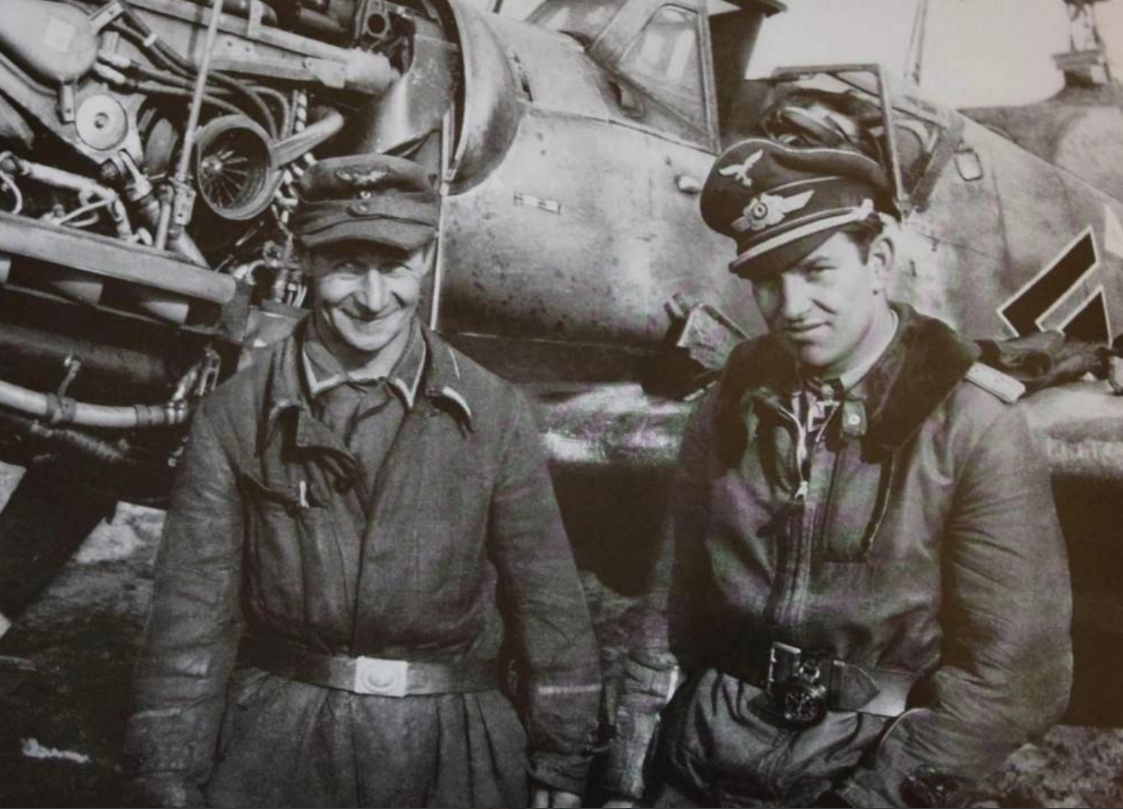 На заглавном фото, недавно опубликованном Бундесархивом, зафиксирован один из наиболее известных и удачливых лётчиков Второй Мировой, ас Геринга №2 Герхард Баркхорн (справа), на фоне своего истребителя Messerschmitt Bf.109 G-6/Trop "Schwarzer Doppelwinkel". К тому времени Бакхорн разменял третью сотню сбитых самолётов. И хотя можно скептически относится к методам подсчёта трофеев немецкими лётчиками, это был матёрый гитлеровский "специалист", имевший свой признанный почерк. Как любил рассказывать его приятель и ас №1 Рейха "Буби" Хартман: "У Герхарда была непередаваемая манера. Заходить сбоку и всаживать короткую очередь из пушки прямо в капот вражескому истребителю".