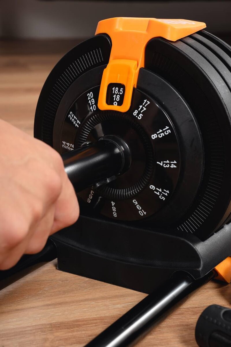 Благодаря своей компактности и продуманной конструкции она идеально подходит для домашних тренировок – с ней вы сможете перейти от гантелей к штанге или гире всего за минуту. А специальное покрытие весовых пластин убережет мебель и пол от повреждений при опускании на них снаряда. И не нужно постоянно отвлекаться на монотонное повторение действий: «включил видео-тренировку - взял снаряд - положил снаряд - остановил видео - снова взял снаряд» и т.д..