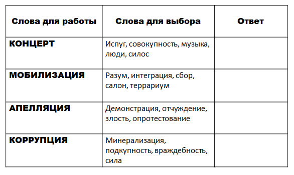 Развитие когнитивных функций — это ключевой аспект не только для личного роста, но и для успешной интеграции в современное общество. Когнитивные функции, такие как внимание, память, логическое мышление и креативность, играют критическую роль в нашей способности адаптироваться к быстро меняющимся условиям жизни. Существует множество методов и упражнений, которые могут помочь в развитии когнитивных способностей. Рассмотрим некоторые из них. Впишите в колонку "ОТВЕТ" только то слово, которое является наиболее близким по смыслу к слову из первой колонки. Из первых букв слов, вписанных в колонку "ОТВЕТ",составьте слово. Вспомните и назовите слова, заканчивающиеся на "ЦИЯ". У одних слов написаны только верхние половинки, у других - нижние. Прочтите слова и составьте из них поговорку. Перед вами нарисована картинка с котами. Постарайтесь на ней найти максимум котов. Сколько котов получилось сосчитать? А сейчас немного потренируем образное и логическое мышление, ассоциации и память. Продол