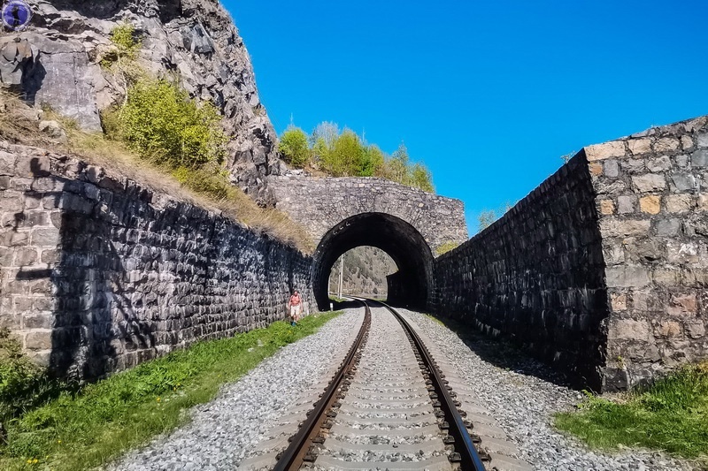 Сегодня мы опять продолжаем рассказ о пешем маршруте протяжённостью 85 км по знаменитой КругоБайкальской Железной Дороге, который мы поделили на серию статей, чтобы показать его интересные места и тоннели максимально подробно. Историю строительства КБЖД вы можете почитать в первой части рассказа, а в этой третьей части мы покажем участок от Старой Ангасолки до остановочного пункта Хабартуй. В конце прошлой второй части мы остановились на Старой Ангасолке, которую теперь покидаем. И отправляемся дальше по железной дороге. И буквально в нескольких сотнях метров выходим к двойному мосту, построенному в две очереди строительства на 148 километре КБЖД. Первый неиспользуемый каменный мост был построен во время строительства первой очереди в 1904 г., а его длина составляет около 85 метров. Второй железобетонный мост на каменных опорах рядом был построен спустя 10 лет во время второго этапа строительства. За мостом расположен первый на пути тоннель №38 с названием "Малая Упорная губа", располо