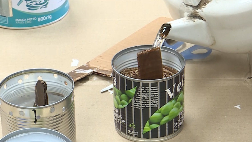«Маленькая, да удаленькая», говорят бойцы про свечи. Время горения одной — четыре часа. Для ее изготовления нужны жестяная банка, парафин и картон. Если приноровиться и заранее подготовить материалы, то на создание конструкции уходит не более пяти минут.