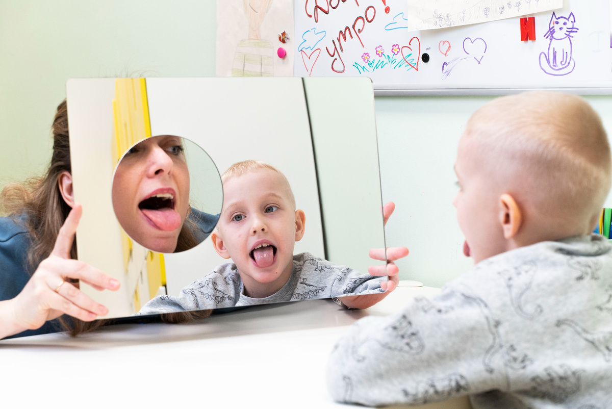Всем добрый день! С Вами Инклюзивная СРЕДА. Сегодня мы хотим рассказать про важный инструмент в работе дефектолога и логопеда, который помогает ставить звуки и развивать артикуляцию. Речь пойдет про такое простое, но незаменимое для коррекции звукопроизношения зеркало. Логопедическое зеркало с отверстием для логопеда используется для индивидуальной работы с ребенком и имеет множество преимуществ. Преподаватель через специальное окошечко диаметром 15 см показывает, как нужно произносить звуки, а ребенок повторяет за ним, сравнивая собственную артикуляцию в отражении с правильной артикуляцией педагога. Ребенок выполняет артикуляционную гимнастику и учится контролировать свой речевой аппарат, не отвлекаясь на посторонние предметы. Это особенно важно при работе с детьми, которым сложно длительное время фокусировать внимание. Поскольку коррекционный специалист и пациент находятся по разные стороны зеркала, ребенок видит только свое отражение и чувствует себя более раскованно, не испытывая