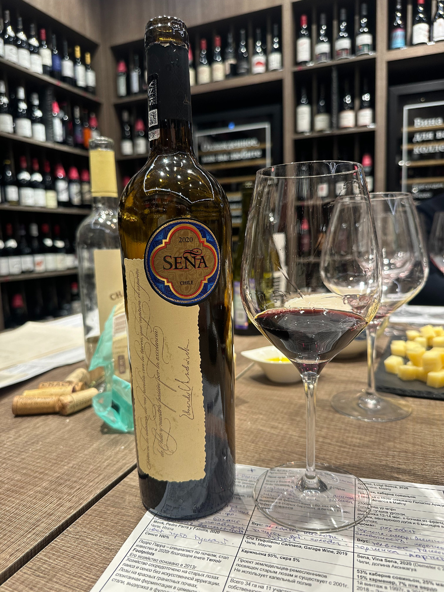 Никогда не думал, что в Чили на такое способны. Вино из региона Анкогуа Sena, Vina Sena, 2020 сложный купаж из четырёх сортов каберне совиньон 53%, мальбек 25%, карменер 15%, пти вердо 7%. В 1995 году Роберт Мондави и Эдуардо Чедвик основали международное совместное предприятие с очень сложной целью: раскрыть весь потенциал винодельческой страны Чили и создать вино мирового уровня Icon, не похожее ни на одно другое в Чили. Разделяя свою мечту, усилия и преданность делу, в 1997 году они выпустили первый урожай Seña (1995), первого чилийского вина-иконы. Это стало важной вехой и положило начало пути создания ультра-премиальных вин в Чили. Seña нужен был собственный виноградник, и Тим Мондави и Эдуардо Чедвик начали искать именно тот терруар. Тим опередил свое время, настояв на поиске более прохладного места, чтобы сделать более свежее, более элегантное вино, чем было нормой в середине 1990-х годов. Для продвижения вин Чили Эдуардо Чедвик, вдохновлённый Парижской дегустацией, пригласил ле