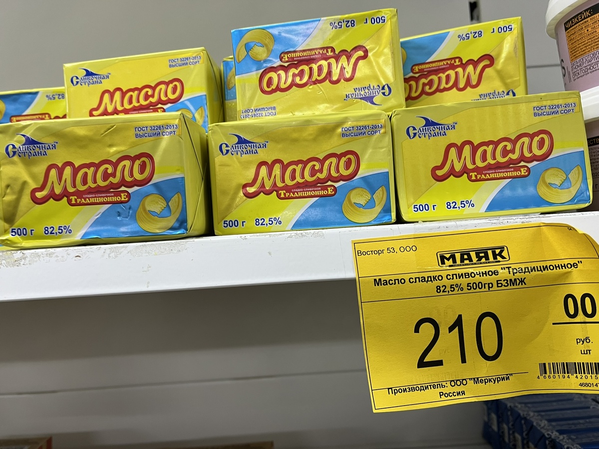 Если где-то что-то убыло, то где-то ровно настолько прибыло! Подписчики и читатели рапортуют, что в их "Светофорах", сотрудники, напуганные проверками, поубирали с полок молочку. По крайней мере, ту, что вызывала подозрение своей явно неадекватной текущему моменту ценой. Ну, скажите, вы и правда верите, что сливочное масло высшего сорта из натуральных сливок без заменителя молочного жира жирностью 82,5% может сейчас (февраль 2025) стоить 210 рублей за полкило? И если где-то это масло с полок убрали, то где-то оно, очевидно, должно было появиться! Ну, не бывает у нас так, чтобы сети в убыток себе работали! Вот я на днях была как раз таки в нашем "Маяке". И что вы думаете? Масло, сливочное, разное, по ценам просто бросовым! "Маяк" это магазин группы компаний "Светофор", если кто не знает. В общем, как ни крути - те же яйца, только в профиль. Это многострадальное масло "Сливочная страна" только ленивый еще в "Светофорах" не покупал и не тестировал! И почти все, кто его прикупил, сходятся