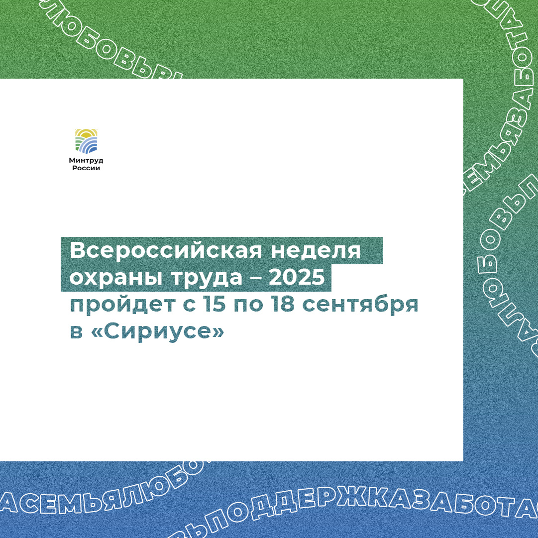 📆 Всероссийская неделя охраны труда – 2025 пройдет с 15 по 18 сентября в «Сириусе»
