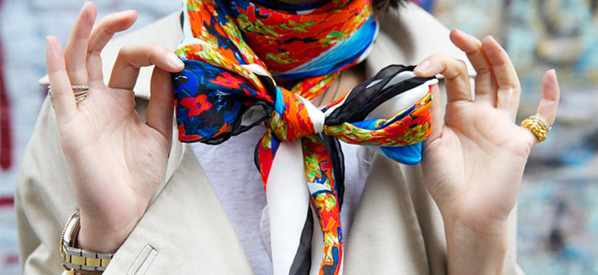 При таком огромном разнообразии красочных ярких шарфиков так и хочется экспериментировать с их привлекательным завязыванием. Только вот все они отличаются по размерам, материалам и способам носки. Покажем вам классические версии с красивым завязыванием.