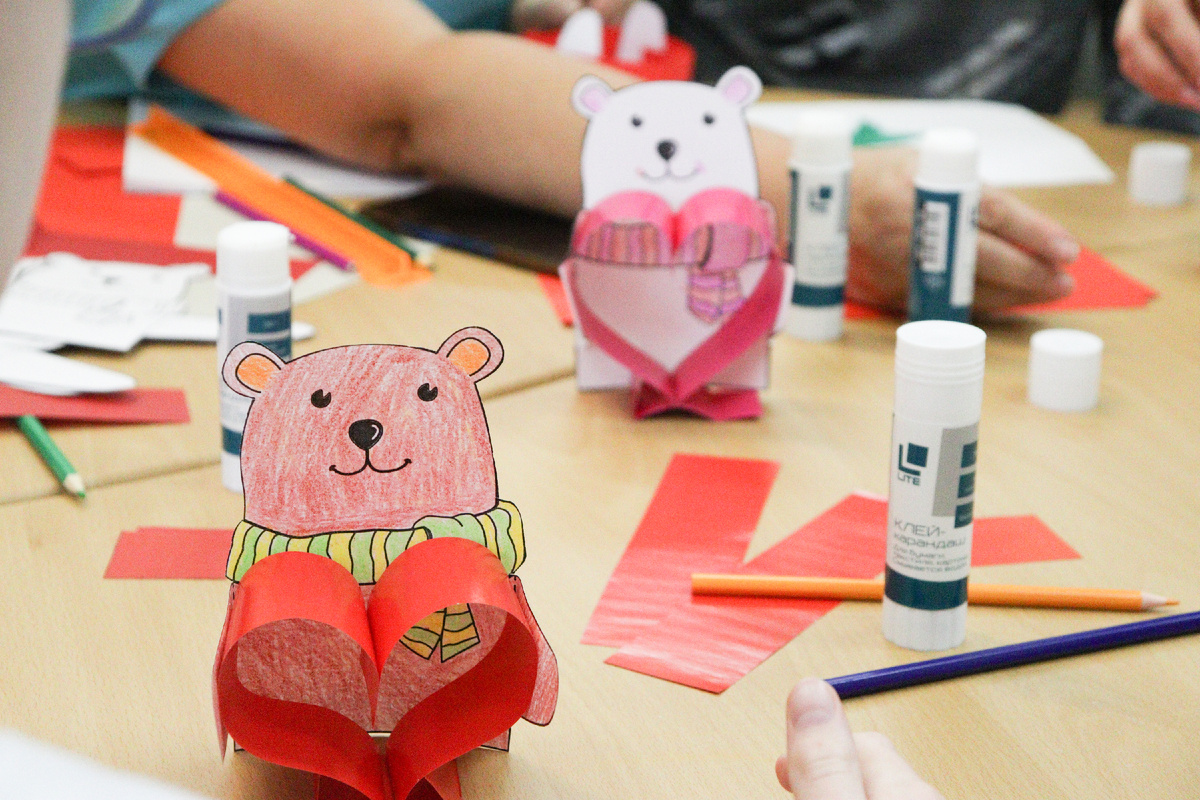 В преддверии Дня всех влюблённых в особом семейном центре «Роза ветров» царила атмосфера творчества и тепла. Ребята решили порадовать своих близких особенным подарком, созданным своими руками – трогательным мишкой с сердечком в лапках. Под чутким руководством педагогов юные мастера с увлечением вырезали фигурки мишек из бумаги, вкладывая в каждую поделку свою любовь. Затем, вооружившись цветными карандашами, они оживляли своих косолапых друзей яркими красками, придавая им неповторимый характер. Особое внимание было уделено сердечку – символу любви и тепла. Ребята аккуратно вырезали его из цветной бумаги, а затем соединяли две половинки с помощью клея, скрепляя тем самым свои самые светлые чувства. В каждом мишке, созданном с любовью особыми детьми, чувствовалось тепло их сердец и искреннее желание порадовать близких. Эти красочные подарки, несомненно, подарят приятные впечатления и согреют сердца тех, кому они предназначены.