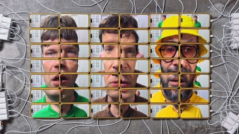 Группа OK Go, известная своими креативными музыкальными видео, выпустила новый клип, который стал настоящим техническим достижением. В этом задумчивом видео 64 айфона располагаются рядом друг с другом, образуя мозаику, которая в итоге превращается в одно большое изображение. По словам солиста группы Дэмиана Кулаша, для того чтобы получить результат, потребовалось более 1000 дублей.