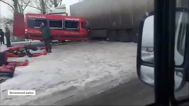 Об этом рассказали в Комздраве Ленобласти. По словам главы комитета Александра Жаркова, после аварии в приемное отделение Волховской больницы доставили 14 пострадавших, среди которых был и один ребенок. ДТП с участием грузовика и микроавтобуса произошло в семь часов утра на 120-м километре трассы «Кола». По данным полиции, водитель «Камаза» выехал на нее с территории заправки и при этом проигнорировал требование сразу двух знаков — «Уступи дорогу» и «Поворот только направо». В итоге его полуприцеп протаранил автобус «Мерседес» с людьми в салоне. Мужчина за рулем иномарки скончался на месте. Водитель грузовика задержан.