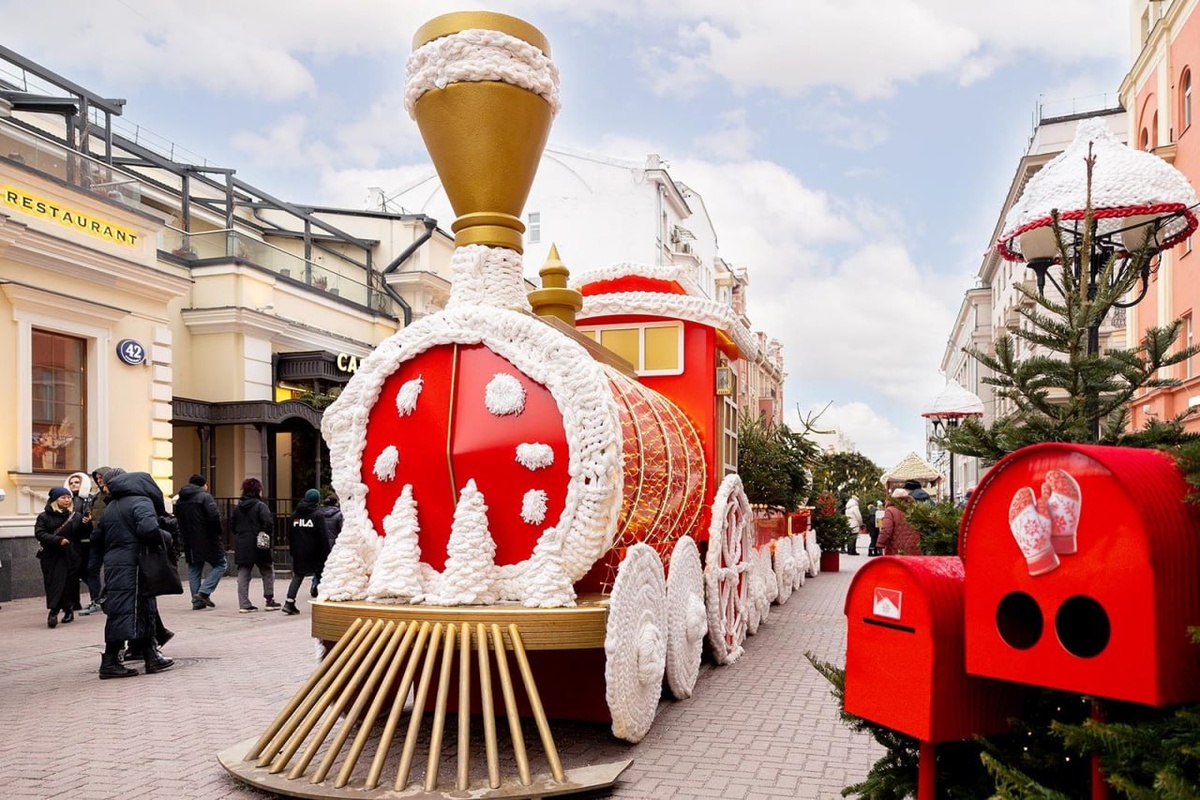Гостей Нового Арбата удивит зимний сад с хвойными деревьями, создающий ощущение прогулки по лесу. А на Старом Арбате установили уникальный «вязаный поезд», украшенный мягкими шерстяными элементами — настоящее чудо ручной работы!
