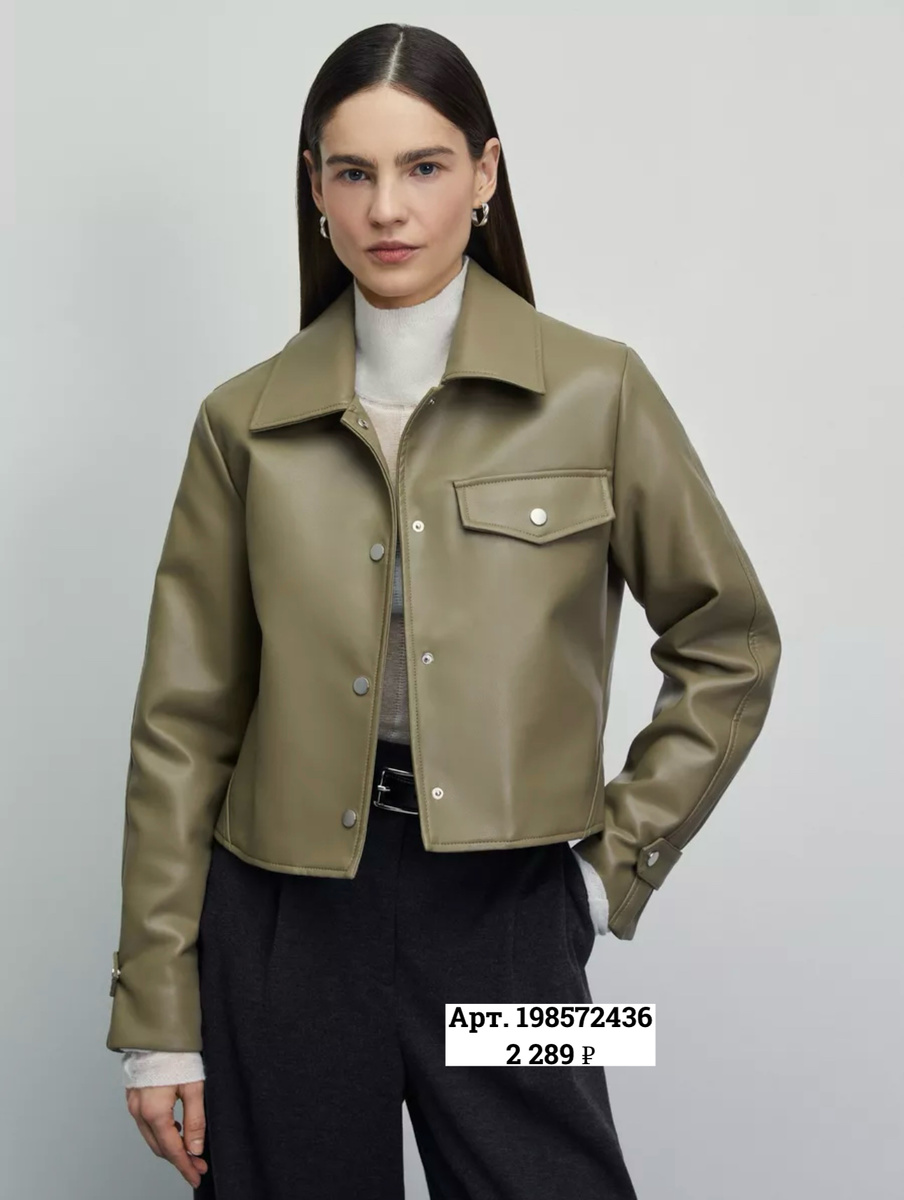 Укороченная куртка из эко-кожи в приглушенном оливковом цвете – хит сезона! Четкие линии, минимализм в деталях и накладные карманы создают образ уверенной в себе девушки. Идеально сочетается как с брюками палаццо, так и с летящими юбками. Must-have для тех, кто ценит комфорт и элегантность в каждой детали!
