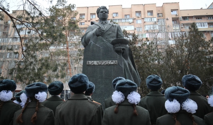 Церемония прошла у памятника Василию Чуйкову, расположенного между улицей, названной в его честь, и набережной имени 62-й Армии, которой он командовал. В этом месте во время Великой Отечественной войны как раз и базировался штаб прославленной 62-й армии. В 1942 году она отстояла Сталинград в жесточайших уличных боях.