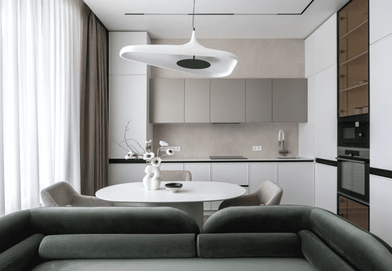 Концепция квартиры: Квартира расположена в жилом комплексе бизнес-класса на берегу Москвы-реки, который окружен водой с двух сторон. Эта локация прекрасно подходит для осуществления любых сценариев жизни. Рядом с новым жилым комплексом пролегают две идеальные для прогулок набережные — Марка Шагала и Нагатинская. Сам дом примечателен малой этажностью, значительной площадью остекления и хорошей высотой потолков. Интерьер разработан в современном минималистичном ключе, но с эффектными акцентными зонами. Палитра интерьера состоит преимущественно из светлых теплых оттенков, которые разбавлены элементами с текстурой дуба, авторскими предметами мебели, ассиметричными светильниками. Читать статью далее на сайте журнала МВ