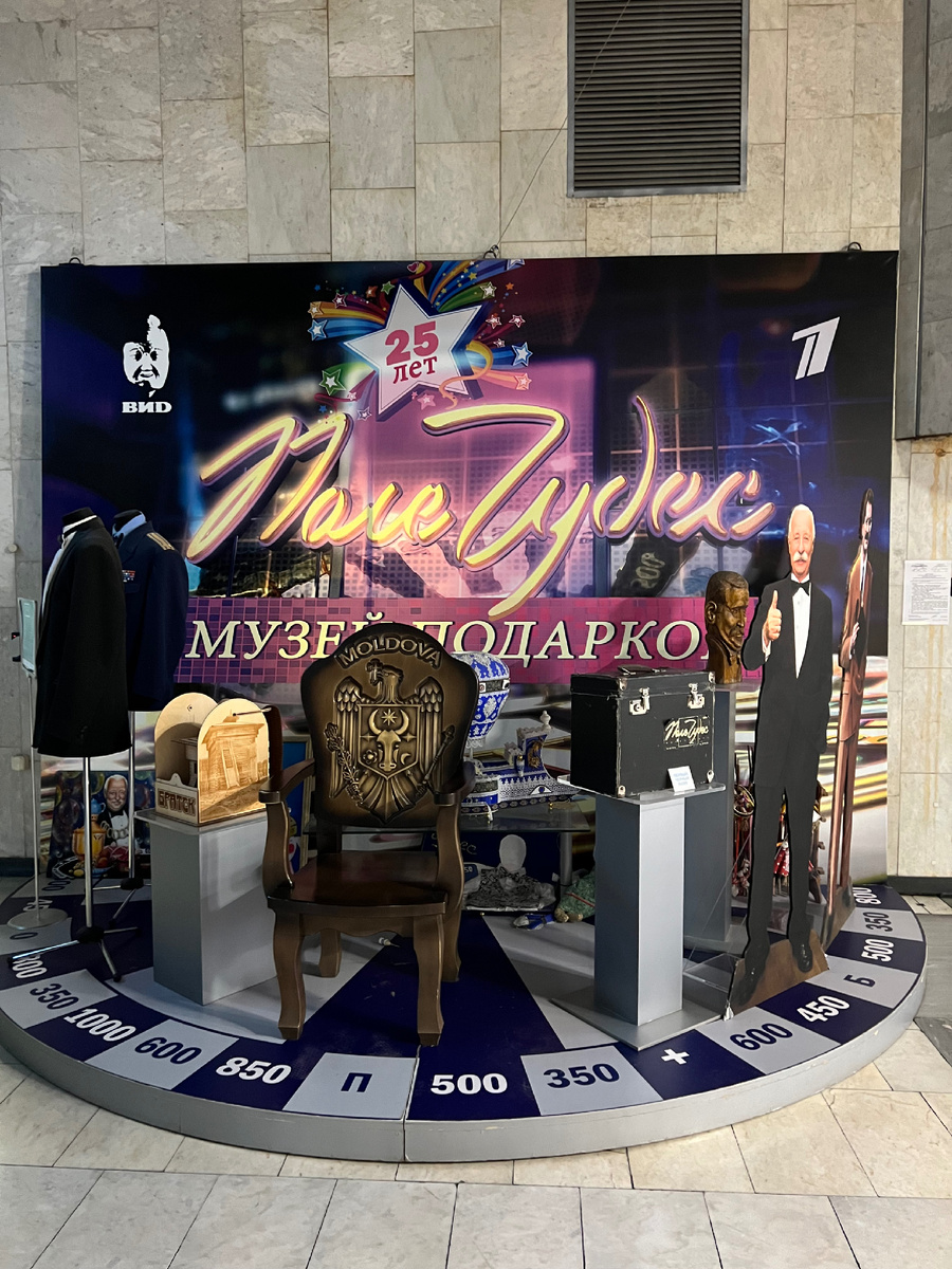 «Поле чудес» смотрела с самого детства, с момента выхода первой передачи аж в 1990 году! Конечно, сейчас интерес к этому шоу поослаб, но оно всё равно остается легендарным! Мне кажется, нет ни одного человека, который бы не слышал об этой передаче. И вот, не так давно, совершенно случайно я оказалась в музее этой игры! Да, случайное совпадение, но я с огромным удовольствием окунулась в воспоминания! Музей «Поле чудес» сейчас находится в телецентре «Останкино» и туда даже водят экскурсии, на которые можно попасть купив билет на сайте телецентра. Музей расположен в холле первого этажа, рядом с «музеем телевидения» на знаменитой лестнице. Я приехала на съемки другой передачи и вот так случайно посмотрела как хранят легендарную банку с огурцами и другие дары от игроков со всем уголков нашей родины. Чего там только нет: и национальные костюмы, и черный ящик, и кроссворды, и детские поделки. Музей как бы «растянут» вдоль стен холла, никакой отдельной комнаты или закрытого простран
