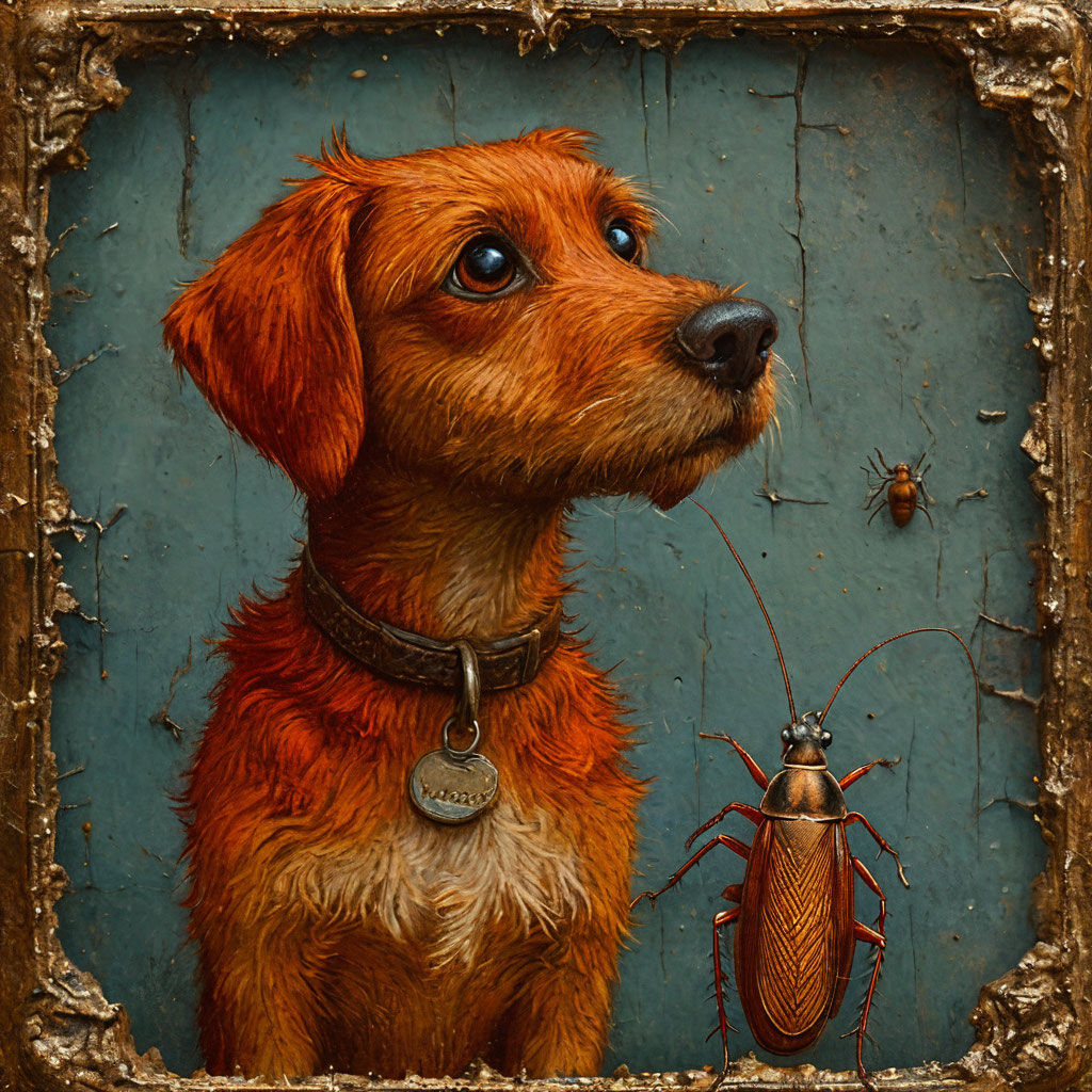 Однажды Шалфей, как обычно, рыскал по двору в поисках приключений (или хотя бы забытой косточки). Вдруг он заметил что-то странное: из-под старого пня торчали длинные усы, которые шевелились в такт чьим-то словам. — Эй, кто там? — настороженно спросил пёс, подходя ближе. Из-под пня, с достоинством, подобающим истинному аристократу, вышел... таракан. Но не простой, а особенный. Он был стройным, блестящим, словно отполированным, а усы его, подобно тончайшим пёрышкам, изящно изгибались в воздухе. Он поправил их с видом таракана, привыкшего к вниманию, и произнёс: — Базальт Семнадцатый, к вашим услугам. Шалфей, не привыкший к столь изысканным манерам среди насекомых, фыркнул: