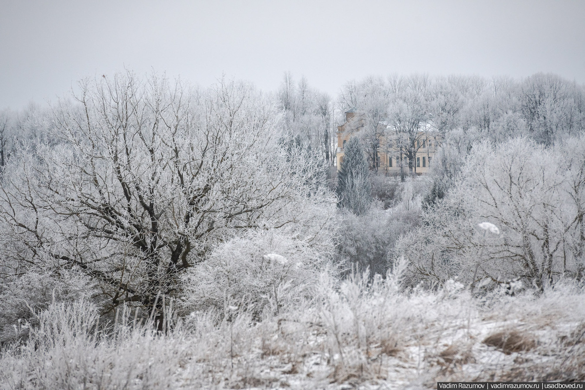 Казалось бы, только недавно я публиковал пост с летними видами на усадьбу Философовых в Псковской области. Тогда я впервые познакомился с этим местом и влюбился в него без памяти. Виды и на усадьбу, и на окрестности с высокого холма главного дома, захватывающе красивы! К счастью, дом Философовых в стиле эклектики сегодня обрёл заботливого хозяина и находится в ведении Бежаницкого историко-культурного центра. Летом здесь зеленеют дубовые аллеи и цветут цветы, а сейчас - в необычную зиму 2025 года, усадебный парк и его окрестности скрыты под дымкой инея.