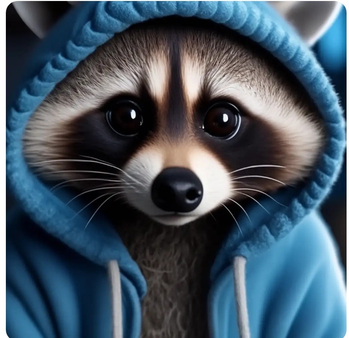 Однажды на улице я встретила енота. Он был одет в худи с надписью "Я енот". Я спросила его: "Почему ты так одет?" Он ответил: "Потому что я енотик-худи". Я засмеялась и спросила: "А что ты будешь делать, если станет холодно?" Он сказал: "Тогда я буду носить пальто с надписью "Енот в пальто". Я снова засмеялась, а енот побежал дальше по своим делам