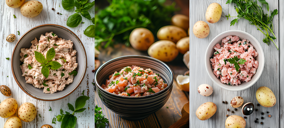 Гнезда из фарша индейки с мятым картофелем и перепелиным яйцом