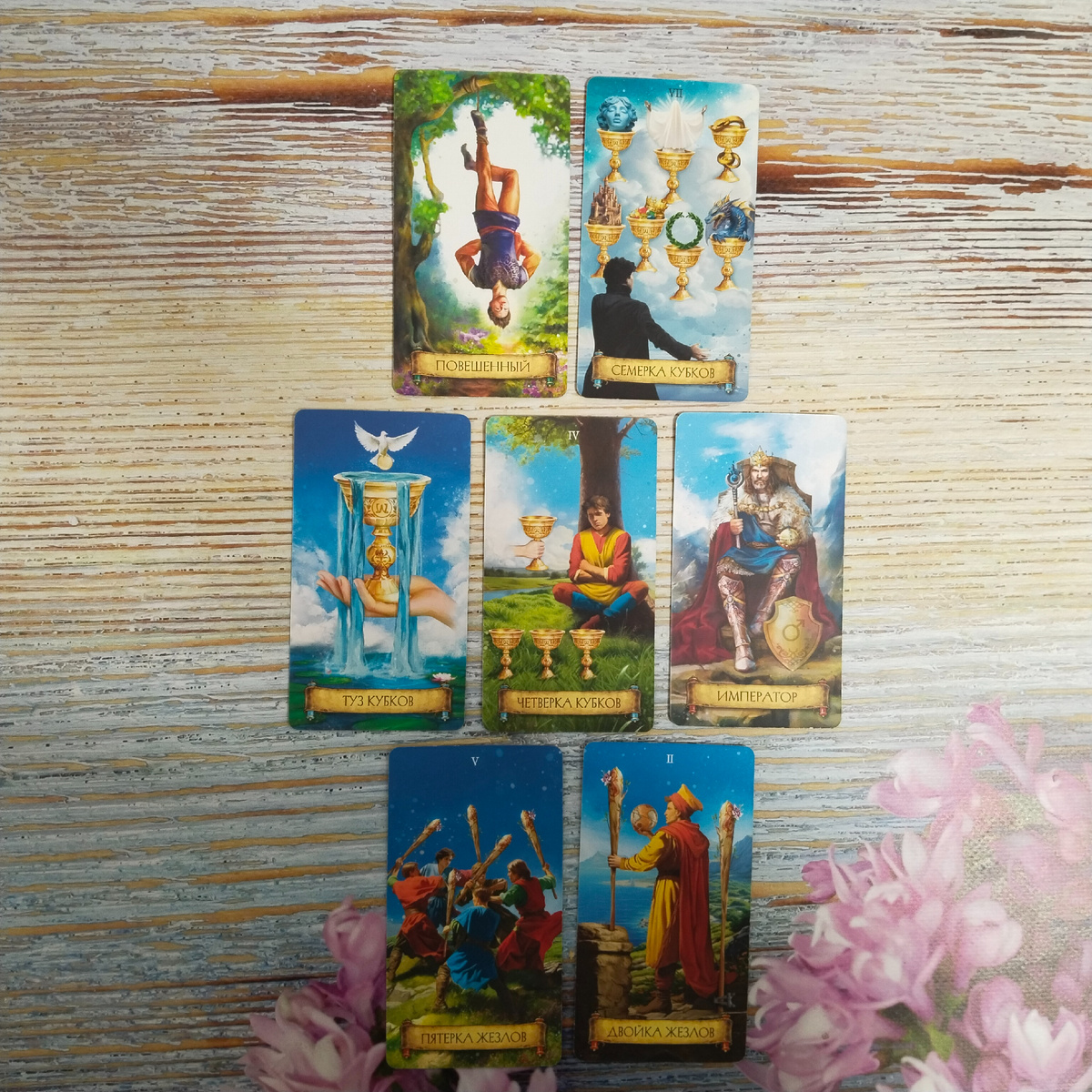 - Решение партнёра - Четвёрка кубков: О, тут у нас немного пессимизма. Партнер может быть недоволен текущей ситуацией и не замечает возможностей, которые перед ним открываются. Он может быть сосредоточен на том, что ему не нравится, и упускать шансы на улучшение. Здесь важно помочь ему увидеть светлую сторону.