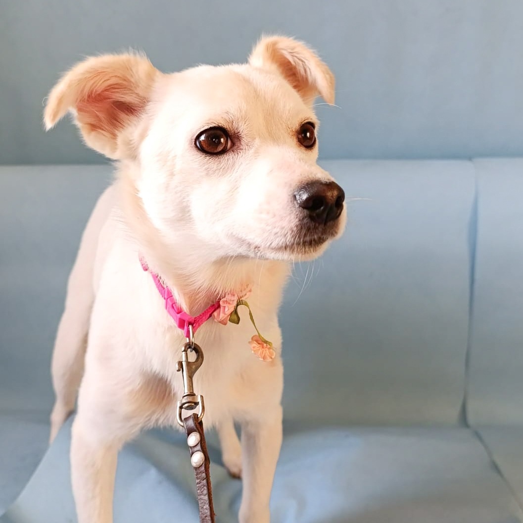 Снежка — миниатюрная беленькая собачка. Молодая — ей всего 1,5-2 года. Вес: 4 кг. 800г.