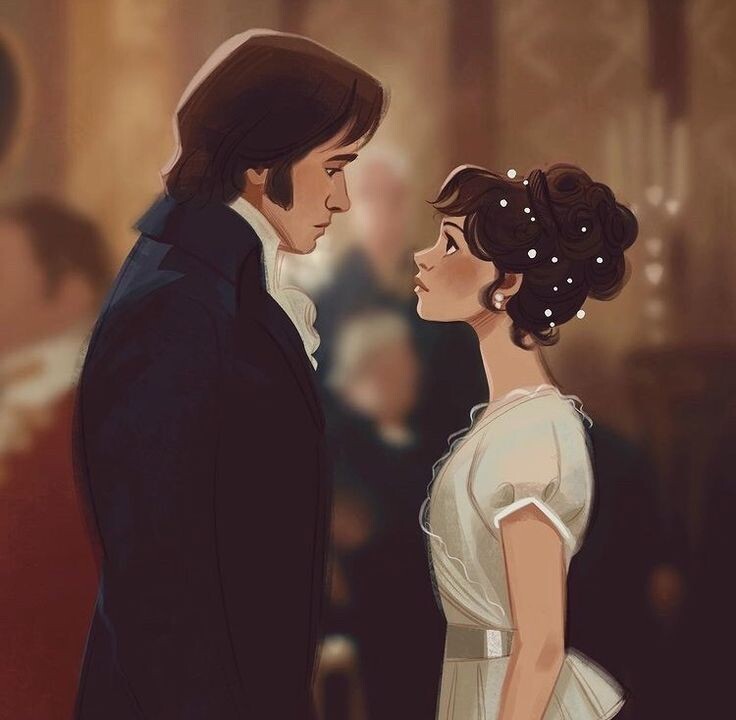A stiff bow from Darcy, Lizzie smiles, Darcy does not.