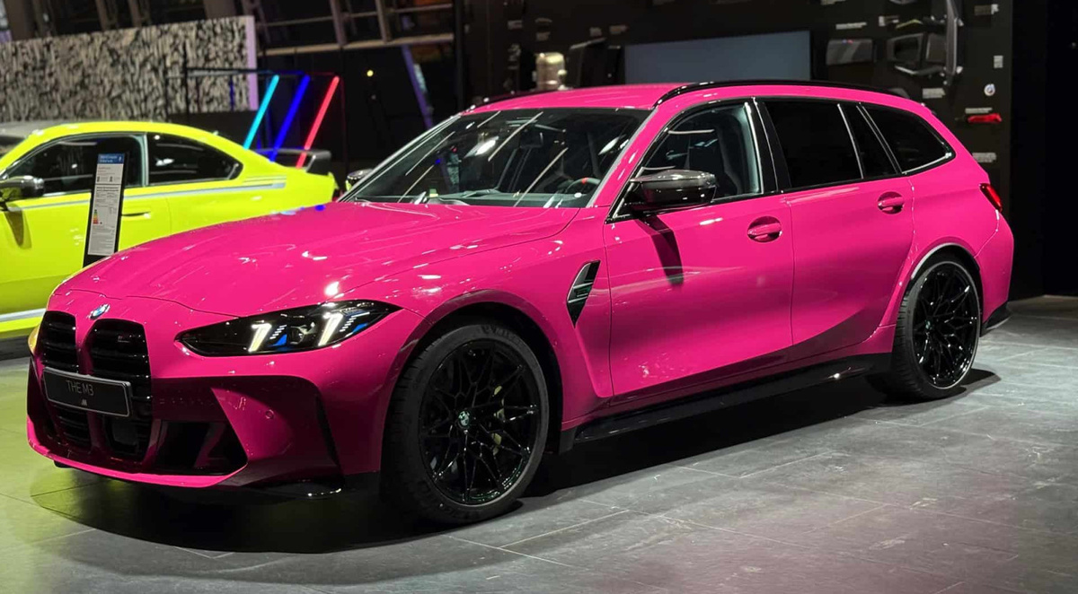 На этой неделе после масштабных реставрационных работ вновь открылся BMW Welt. И рассматриваемый M3 Touring — достаточная причина, чтобы заглянуть в выставочный центр в Мюнхене. Это щедро оснащённая сборка G81 на основе Life Cycle Impulse. Суперуниверсал привлекает внимание своей редкой краской Ruby Star из каталога Individual. Сразу можно увидеть, что это обновлённая версия, и не только из-за новых фар — сзади чёрный значок имеет серебристую окантовку. BMW использует этот штрих на всех версиях Competition M3 и M4 2025 года. Как и M4 Convertible, M3 Touring продаётся исключительно как модель Competition с xDrive. Хотя BMW M наконец-то представила серебристые диски для линейки M3, этот G81 имеет чёрный комплект 826 M. Как будто розовой окраски было недостаточно, опциональные карбон-керамические тормоза используют золотые суппорты. Пакет M Carbon Exterior также включен, но карбоновая крыша по-прежнему недоступна. Та же история и со старшим братом автомобиля, M5 Touring. LCI появился отно