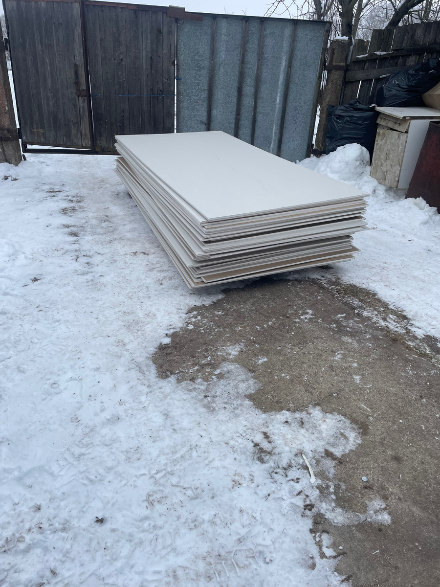 10 февраля 2025 года. Утро выдалось спокойным. У меня выходной на новой работе, Игорь проходит мед.комиссию для трудоустройства. Вчера установили дверь в спальню. Ничего сложного и необычного. Пока я была замурована в комнате, потому что вставляла клинья между полотном и коробкой, Игорь начал сносить перегородку в коридоре. Разрушили, вынесли мусор, больше дел не было. И вот оно, утро этого знаменательного дня. Игорь ушел в поликлинику, я неспешно пью кофе, читаю новости и жду его возвращения. Игорь пришел воодушевленный и готовый строить новую перегородку. -Давай посмотрим, сколько стоит лист гипсокартона?! И понеслось. На перегородку требовалось 3 листа, но это же мелочи. Посчитали листы на коридор. Еще 7 штук, нам показалось мало и дальше нас было не остановить. Мы уже одевались в магазин стройматериалов. И вот она, наша доставка 44 листа гипсокартона. К сожалению, магазин не предоставляет грузчиков и таким образом, все 44 листа легли на плечи большого мужчины и маленькой девуш