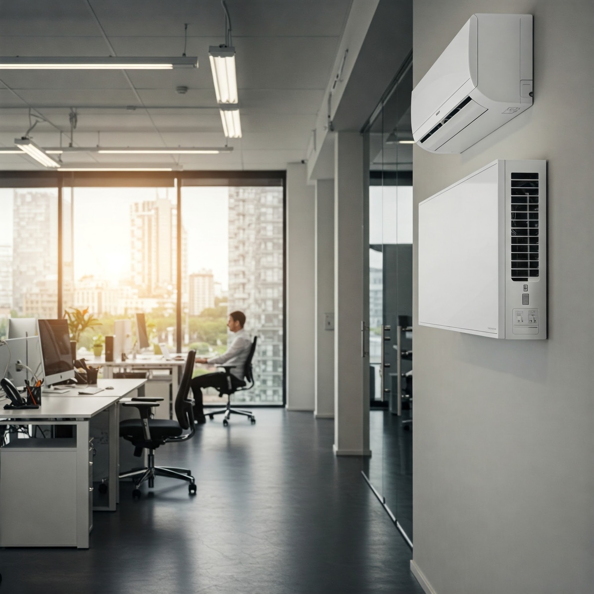 Современный офис невозможно представить без системы кондиционирования. От правильного выбора оборудования зависит не только комфорт сотрудников, но и их продуктивность, а также долгосрочные затраты компании. Рассмотрим основные критерии, на которые стоит обратить внимание, и сравним популярные типы систем. 1. Мощность и площадь охлаждения Мощность — первый параметр при выборе. Для офиса важно учитывать: Для точного расчета лучше обратиться к специалистам, чтобы избежать ошибок 11. 2. Энергоэффективность Высокий класс энергопотребления (A++ или A+++) снижает расходы на электроэнергию. Инверторные модели экономят до 30% энергии за счет плавной регулировки мощности. Например, кондиционеры Dantex и Mitsubishi Heavy оснащены инверторными компрессорами, что делает их оптимальными для круглогодичной эксплуатации. 3. Уровень шума Офисное оборудование не должно создавать дискомфорт. Допустимый уровень шума — до 25–30 дБ (для сравнения: обычный разговор — 60 дБ) 15. Например, сплит-системы Elect