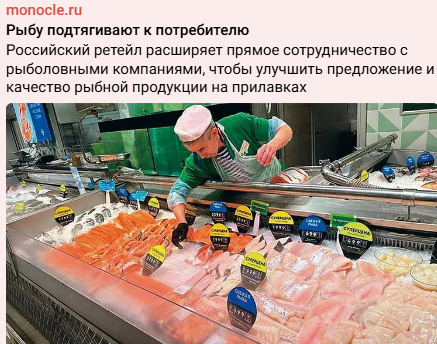Монокль пишет про позитивный кейс Х5 в сотрудничестве с рыбодобытчиками и Агамой.