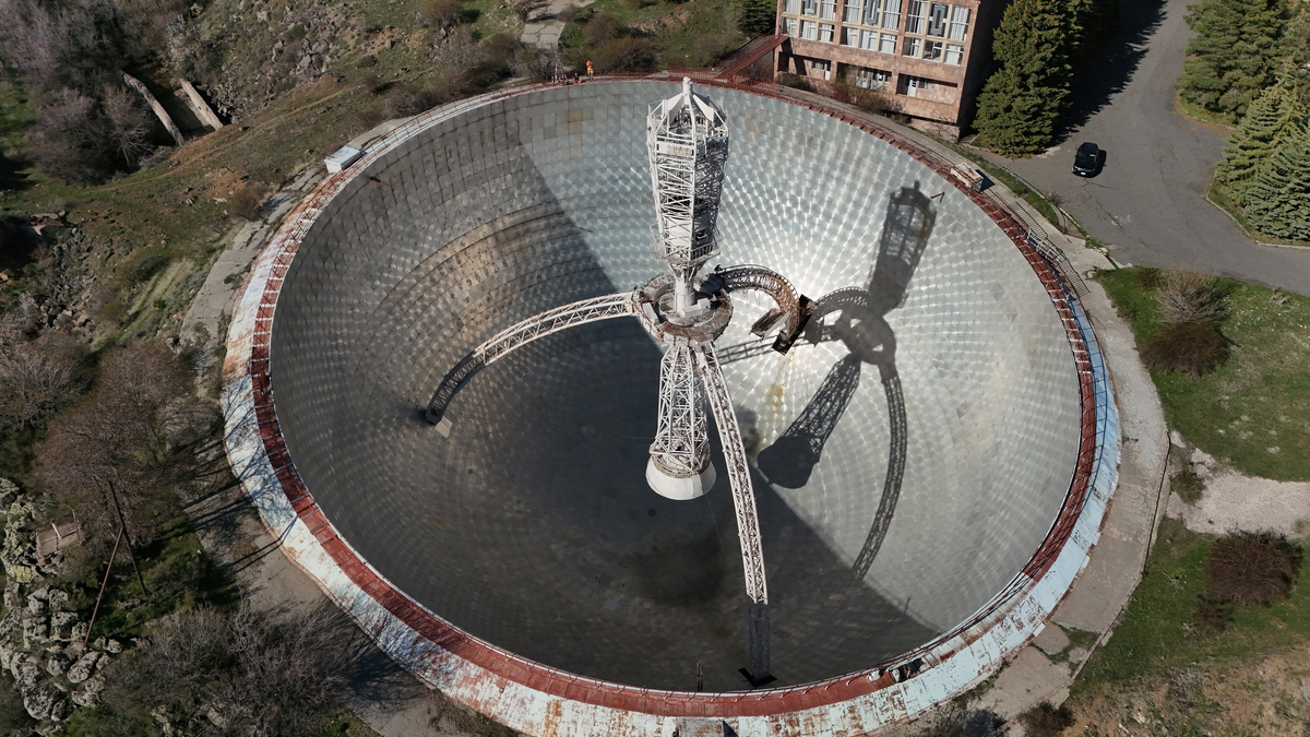 Развал СССР закрыл и этот шедевр. Но Геруни не унывал! В нулевых он придумал свой новый проект - концентратор солнечной энергии, позиционируемый, как панацея от энергетического кризиса в пост-нефтегазовом мире, Геруни нашёл инвесторов в Великобритании. Деньги выделили и стройка началась, но... позже Парис Мисакович обнаружил, что в соглашении нет пункта о патенте и авторских правах, закрепленных за ним. Скандал, разрыв, банкрот. Остатки этой станции до сих пор украшают пейзаж неподалёку от телескопа. Место невероятное, впечатляет и масштаб и сохранность! Есть охрана, но с ней можно договориться:)
