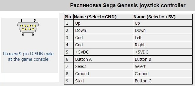 Подключение джойстика SEGA к Веста ИК-31 в режиме кемпстон.