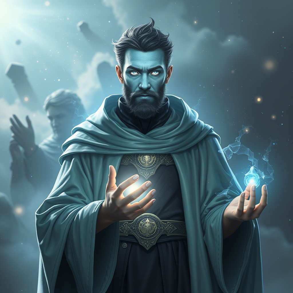 Астрос погрузился в свои воспоминания, и его глаза, а также руки засветились голубым светом с серебряными переливами — признак того, что прошлое оживает внутри него. За его спиной начали появляться знакомые силуэты, каждый из которых был частью его истории. Эти тени двигались медленно, словно не решаясь показаться полностью.Вдалеке, едва различимый сквозь густой туман, проступил силуэт замка — древнего, величественного с мистической энергией. Казалось, этот замок был центром всех его воспоминаний, местом, где сплелись судьбы и секреты его прошлого. Туман делал замок почти не заметным, как будто замок существовал между реальностями.