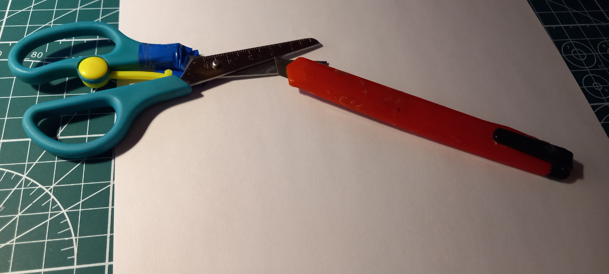 Мир Вам! Друзья! Здравия! Как можно разрезать бумагу. Есть 2 способа : ножом по линейке и ножницами. Нож берёте в правую , левой плотно прижимаете линейку к бумаге. Если левша нож держите левой рукой, бумагу прижимаете правой. Главное правило , чтобы конец ножа соприкасался с краем линейки. При разрезании бумаги, следите чтобы нож был под углом 30-35 градусов , а угол наклона бумаги 70-75 градусов. Бумагу можно резать в 2 этапа. Если режете ножницами, следите чтоб края ножниц шли параллельно линии разреза. Если разрез по кривой, чтобы концы ножниц были направлены перпендикулярно разрезу. При Работе с бумагой , по можно подкладывать коврик для резки, или пенапласт. Можно на коврик положит пенапласт или газету. Спасибо! с Богом Вас! И Не Болейте!