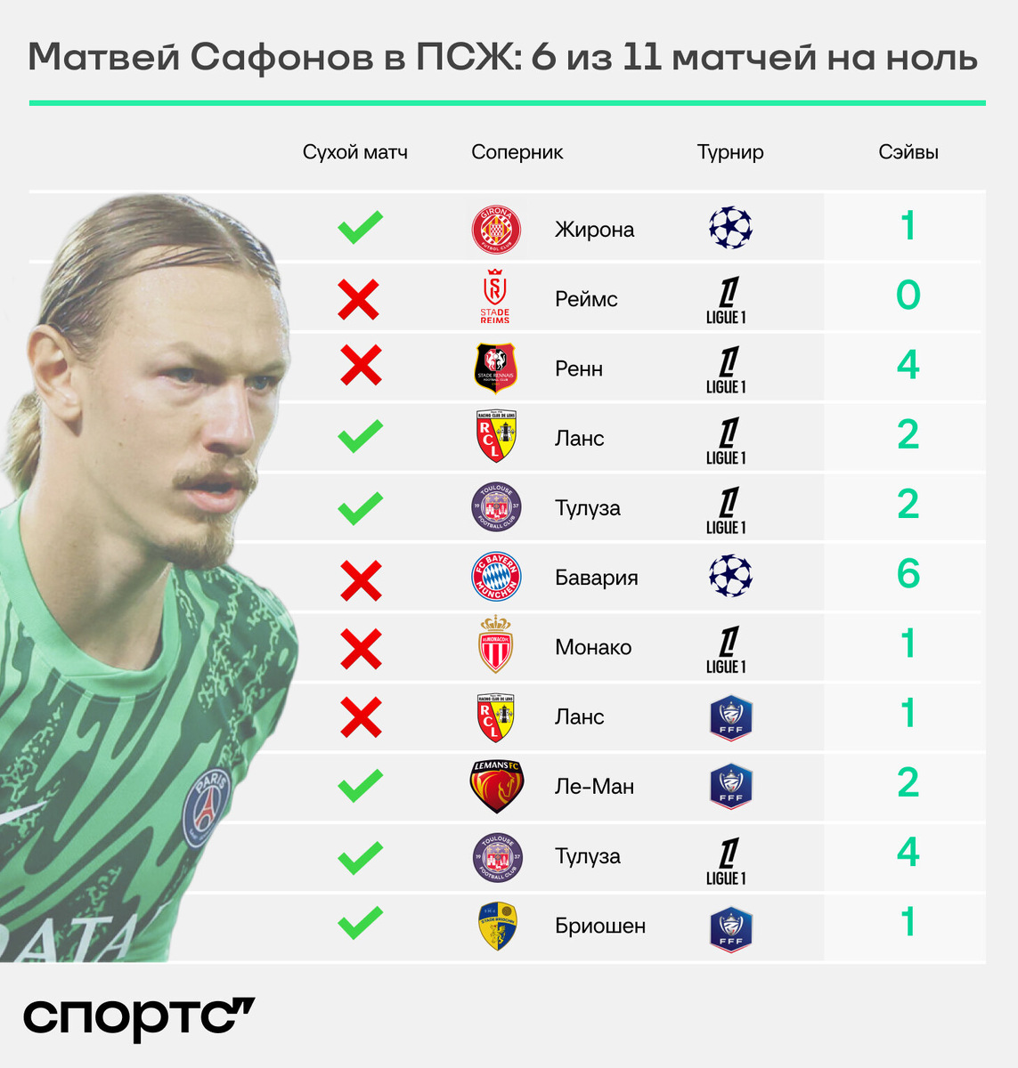 Теперь «Бриошену» в Кубке. «ПСЖ» в полуфинале Кубка Франции-2024/25 – переехали «Бриошен» из 4-й лиги в 1/4 финала (7:0). С помощью Матвея Сафонова и Хвичи Кварацхелии, оба вышли в старте. Конечно, доминировали, даже издевалеись над соперником: долго не позволяли даже просто ударить по воротам, всего допустили четыре попытки, почти все в концовке, когда уже играли по счету. Матвея Сафонова не тревожили: у нашего вратаря уже шестой сухой матч за парижан. У «ПСЖ» вторые 7:0 за три матча – и тотальная доминация над соперником «ПСЖ» дал понять, что тут не будет сенсации, быстро: в первом тайме Жоау Невеш и Гонсалу Рамуш сделали 2:0. В ответ почти ничего, у «Бриошена» было только 22% владения и один удар против 11 у парижан. Во втором тайме лидер Лиги 1 только наращивал, Рамуш довел до хет-трика и помог забить Дезире Дуэ, до семи добили Сенни Маюлю и Усман Дембеле, он даже не праздновал и спокойно пошел к центру после 17-го мяча в 12 играх 2025-го. В концовке «Бриошен» ободрился и даже пыта
