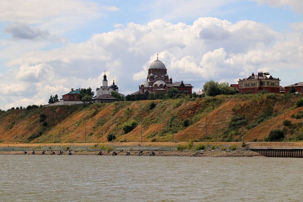 Кроме того, на этом же сайте видны билеты гораздо дороже - это "метеоры" на Свияжск. Идет он 1 час. Посадка на Речном вокзале Казани, многие кидаются к большому синему зеркальному зданию вокзала, но он всегда закрыт, это зал официальных делегаций, а вам за билетами (если не купили заранее) и на посадку справа от вокзала, к небольшим сарайчикам. Увидев очередь в кассы, три раза похвалила себя за то, что купили заранее. В Казани на посадке не проверяют билеты, у контролера список с фамилиями, которые вы внесли при покупке, готовьте паспорта. А вот обратно в Свияжске не до списков и сажают по билетам.
