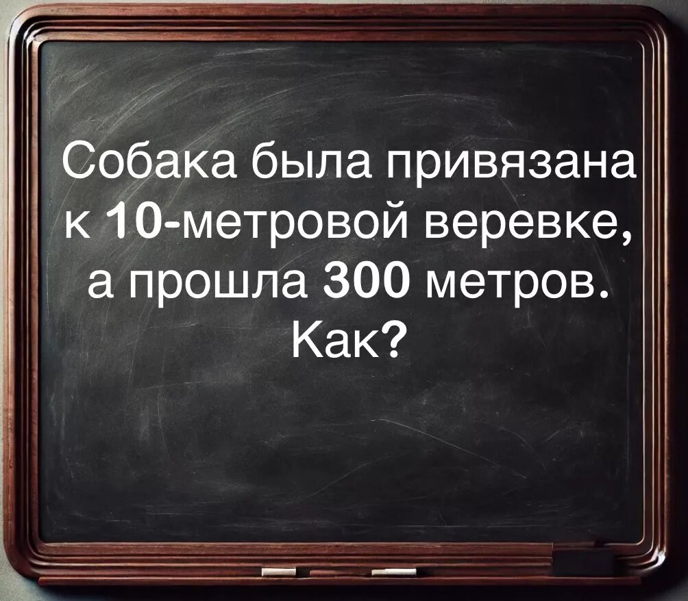 Собака была привязана к 10-метровой веревке, а прошла 300 метров.
