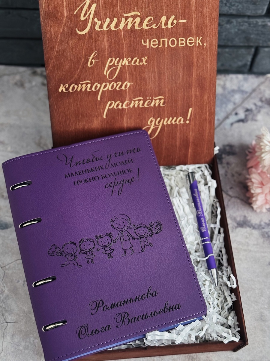 Именной набор учителю: Блокнот на кольцах с гравировкой и ручка в деревянный боксе🔥 ✔Страницы в клетку ✔На изготовление от 1 дня ✔Макет на выбор или по вашему дизайну ✔Любой текст и рисунок ✔Цвет на выбор : Черный, коричневый, зеленый,фиолетовый Отличный подарок учителю ко дню учителя и 8 марта 🔥 Такой именной набор точно не оставит вашего учителя равнодушным❤️ ✔️Доставка из Крыма в любой город РФ 👌