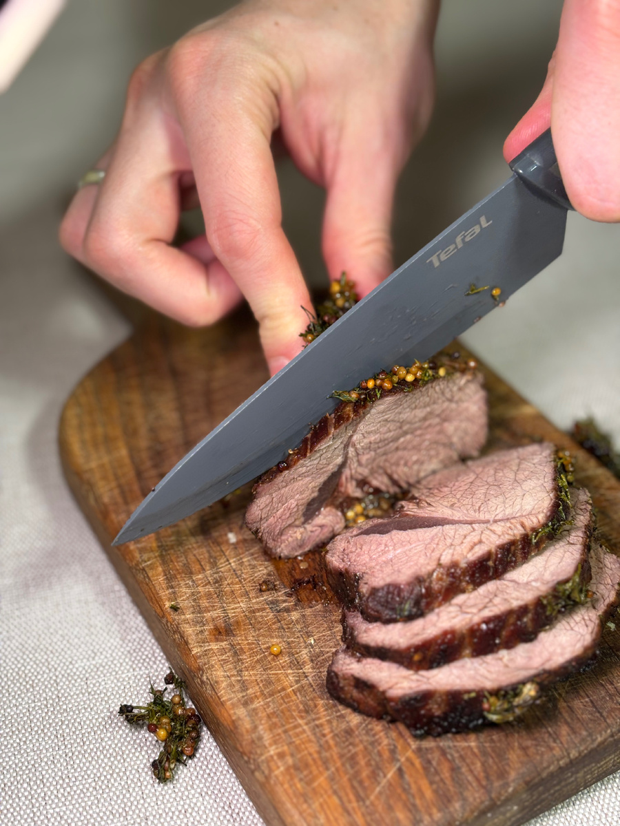 Запечёная говядина с горчицей, чесноком и зеленью.