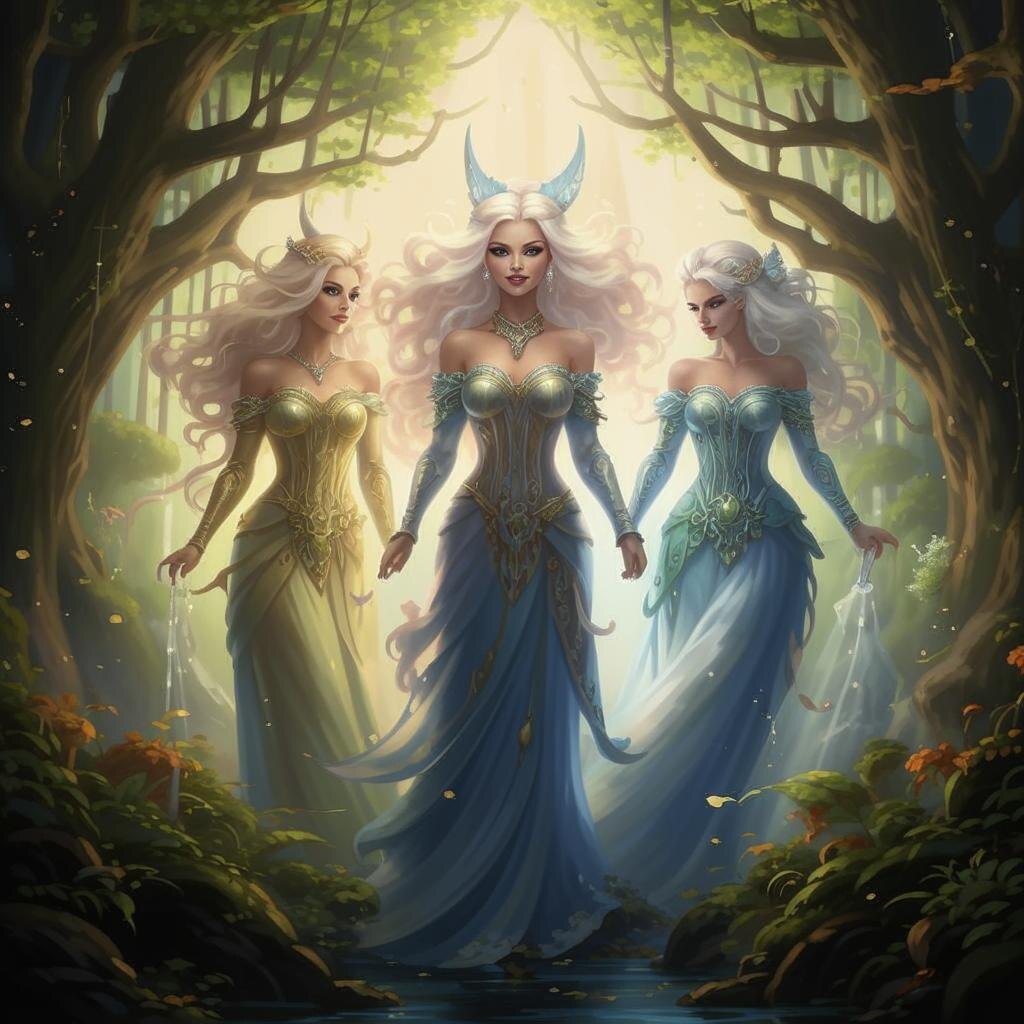 Гармония же была младшей из сестёр. Её лицо было подобно лунному свету, нежное и спокойное. Она умела видеть красоту во всём, даже в самых простых вещах. Гармония всегда стремилась к равновесию и пониманию, стараясь примирить всех вокруг. Её слова были сладки, как мёд, и могли утихомирить самые жаркие споры. Но даже в её душе иногда рождалась печаль, ведь она видела, насколько трудно достичь истинной гармонии в мире, полном противоречий.