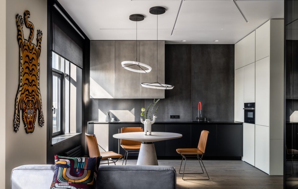 Дизайнеры Карен Карапетян и Анна Прохорова из интерьерной компании Alexander Tischler оформили квартиру для молодого человека. Акцент сделали на создании индивидуального интерьера, который гармонично сочетает в себе элементы современного стиля и удобства. Важной задачей было предусмотреть пространство для кабинета, поскольку заказчик планирует развивать свой канал. Также требовалось вписать в общий дизайн предметы искусства, которые отражают его личные увлечения.