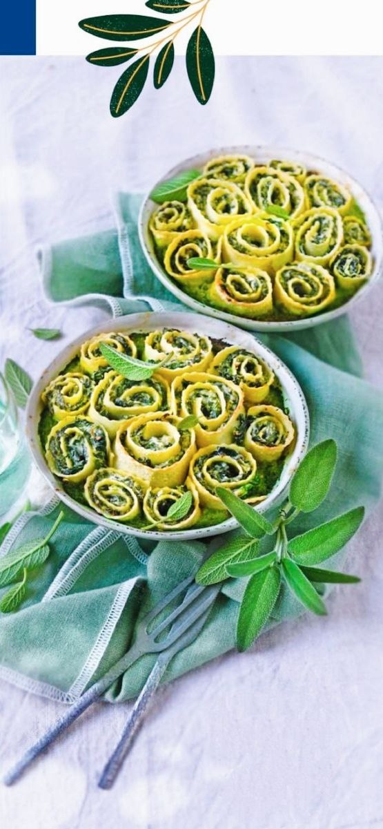 Лазанья в рулетах со шпинатом и сыром (рецепт).