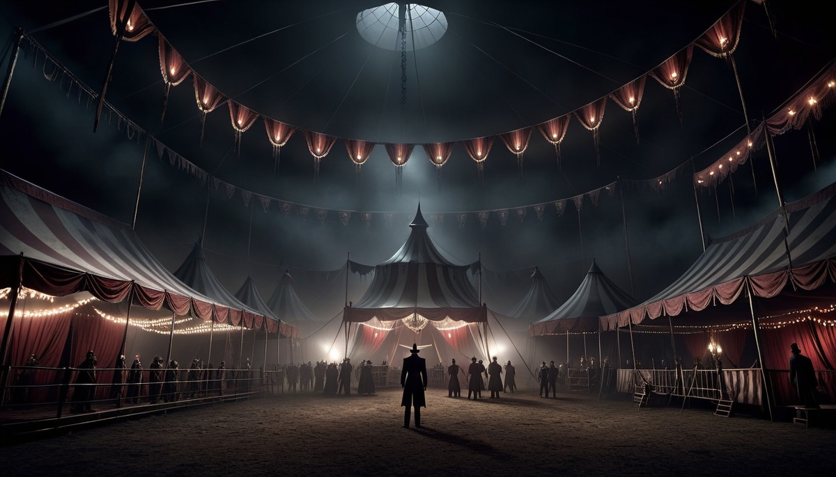 На окраине города, среди густого леса, стоял старый цирк "Теней". Когда-то он был популярным местом для развлечений, но после серии загадочных исчезновений его закрыли. Говорили, что в каждом аттракционе цирка происходили странные события, а в шатре хранилась тайна, которую лучше не трогать. Молодая пара, Мария и Алексей, решили остановиться в цирке по дороге на отдых. Они не знали о его репутации и просто искали место для ночлега. Когда они вошли в здание, их встретил старый сторож, который выглядел так, будто ждал их. *"Шатёр 13 свободен, — сказал он. — Но будьте осторожны... здесь всё не так, как кажется."* Шатёр 13 оказался странным. На стенах висели старые фотографии артистов, которые выглядели так, будто за ними кто-то наблюдает. Ночью Мария проснулась от звука шагов за дверью. Она выглянула в коридор, но там никого не было. Однако на полу она увидела следы мокрых ног, которые вели к лифту. На следующее утро Алексей нашёл на столе старую книгу отзывов. В ней были записи госте