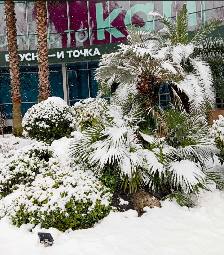 Сочи забыл, что он - субтропики)) Снег идет пятый день! Это уже рекорд какой-то… Второй день сижу дома с детьми, а всё из-за этого снега! Когда мы переехали девять лет назад, так же выпало большое количество снега, снег лежал слоем сантиметров 15-20. В школе у внука отменили уроки, так как из 40 детей пришло всего несколько человек. Мы тогда так удивлялись после Урала, что при плюсовой температуре дети в школу не пошли, снег помешал? Сейчас не удивляюсь. Транспорт! В гору вообще не подняться, знакомая выставляла ролик, как катаются на лыжах в городе по проезжей части, жаль, я не сохранила. Все подъемы - склоны превращаются в ледяные горки. Да и зимнюю резину мало кто обувает - всё таки эти катаклизмы не каждый год. И стоимость такси взлетает до небес. Вот и сидим дома - у папы летняя резина, а такси стоить будет больше, чем я за день заработаю)) Да и не факт вообще, что найдется вариант с двумя детскими креслами( Вот такая у нас зимняя сказка! Началась масленичная неделя, по